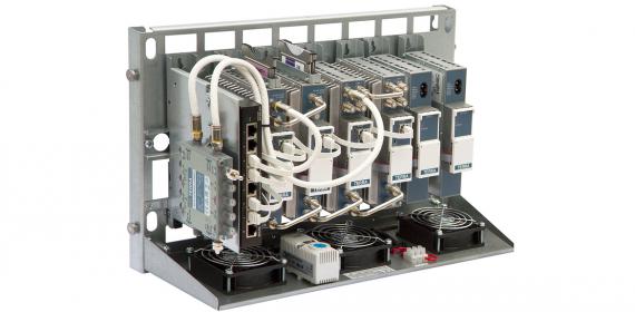 The four tdx420C transmodulators are used for reception of DVB-S/S2 (8PSK/QPSK) signals, selection of desired channels from 4 transponders, and retransmission of them in COFDM format in chosen channels in VHF/UHF frequency range. The modules can be mounted on DIN rail, together with UP413 power supply (as well as they can be placed in a RACK cabinet). The configuration of the tdx420C transmodulators performed via a web browser is quite simple - scanning the selected satellite transponders and choosing the required channels.
